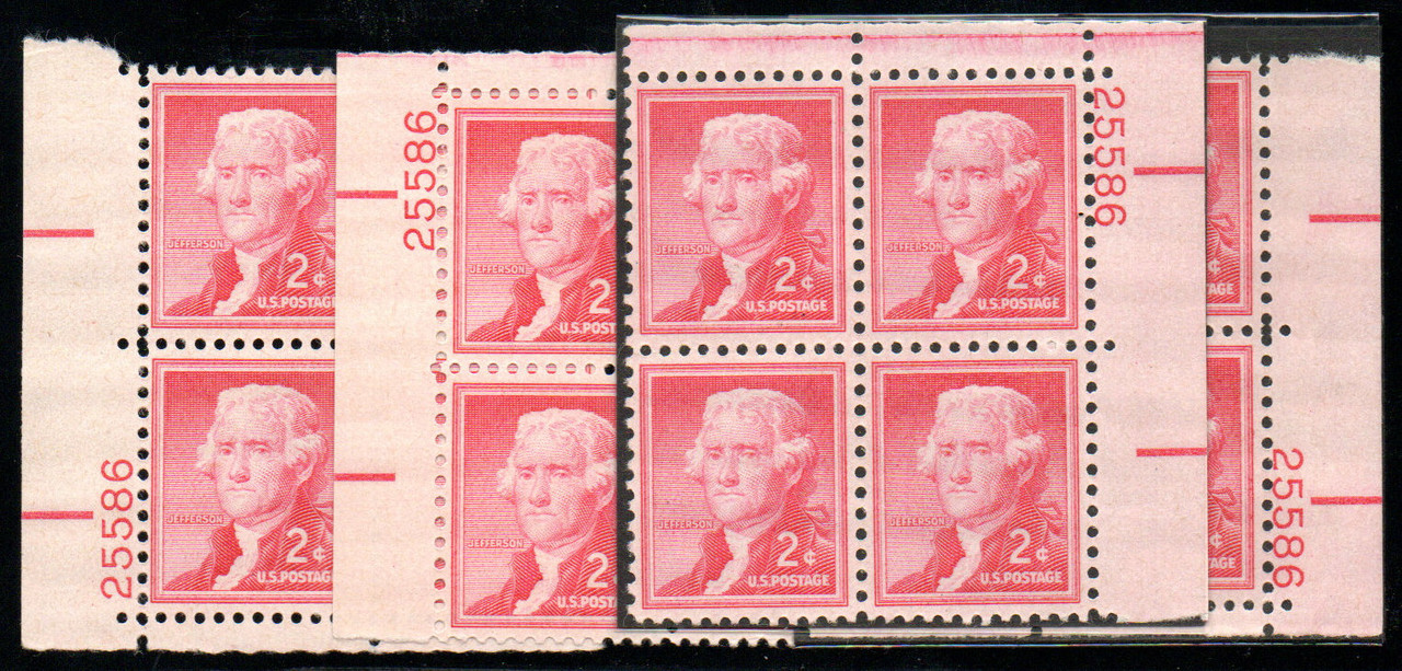 - 1033 plate 25586, MATCHED SET of 4 Plates, VF OG NH, we have an entire stock of this Scott Number in matched set, ASK!