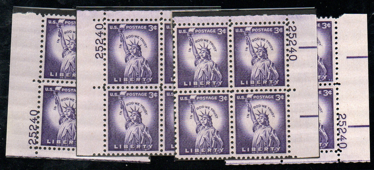 - 1035c plate 25240, Better Number, MATCHED SET of 4 Plates, VF OG NH, we have an entire stock of this Scott Number in matched set, ASK!