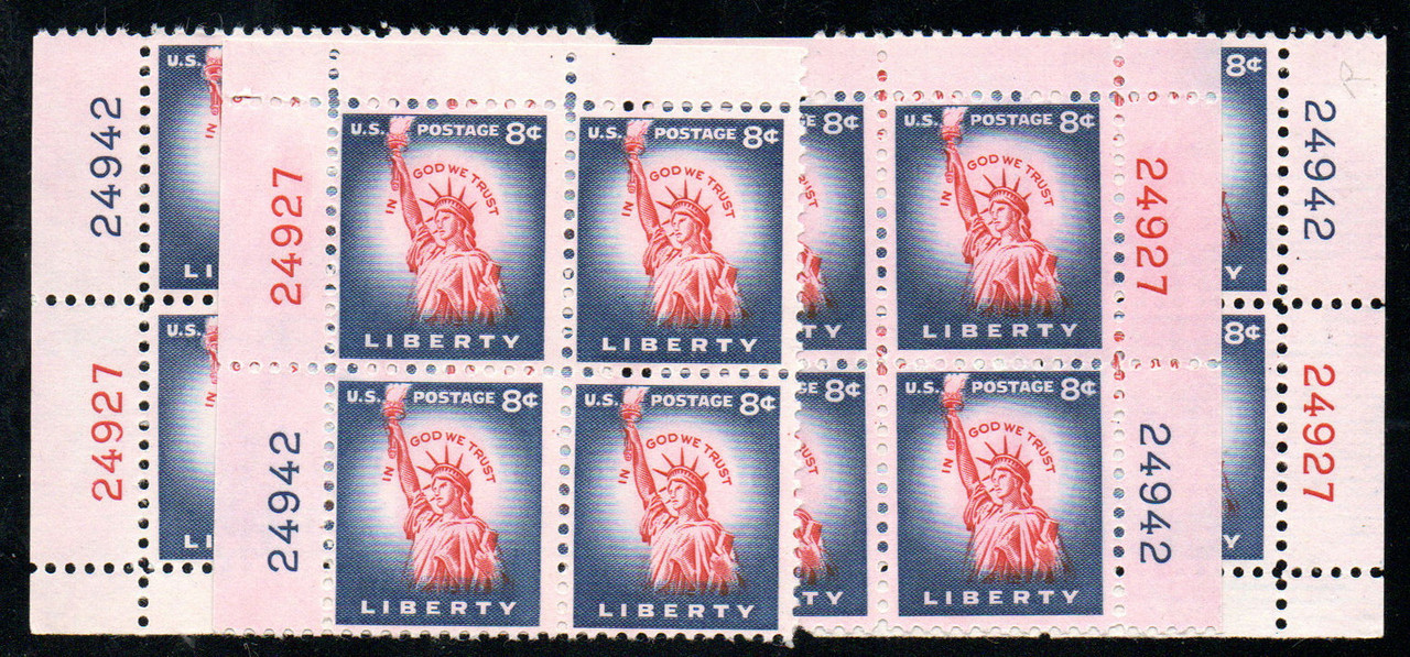 1041 plate red 24927 blue 24942, MATCHED SET of 4 Plates, VF OG NH, we have an entire stock of this Scott Number in matched set, ASK!