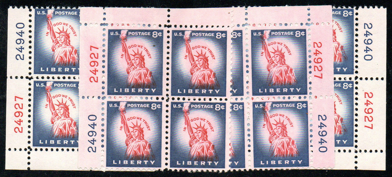 1041B plate red 24927 blue 24940, MATCHED SET of 4 Plates, VF OG NH, we have an entire stock of this Scott Number in matched set, ASK!
