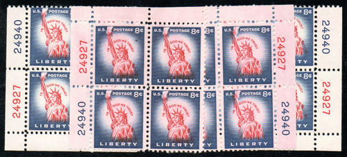 - 1041B plate red 24927 blue 24940, MATCHED SET of 4 Plates, VF OG NH, we have an entire stock of this Scott Number in matched set, ASK!