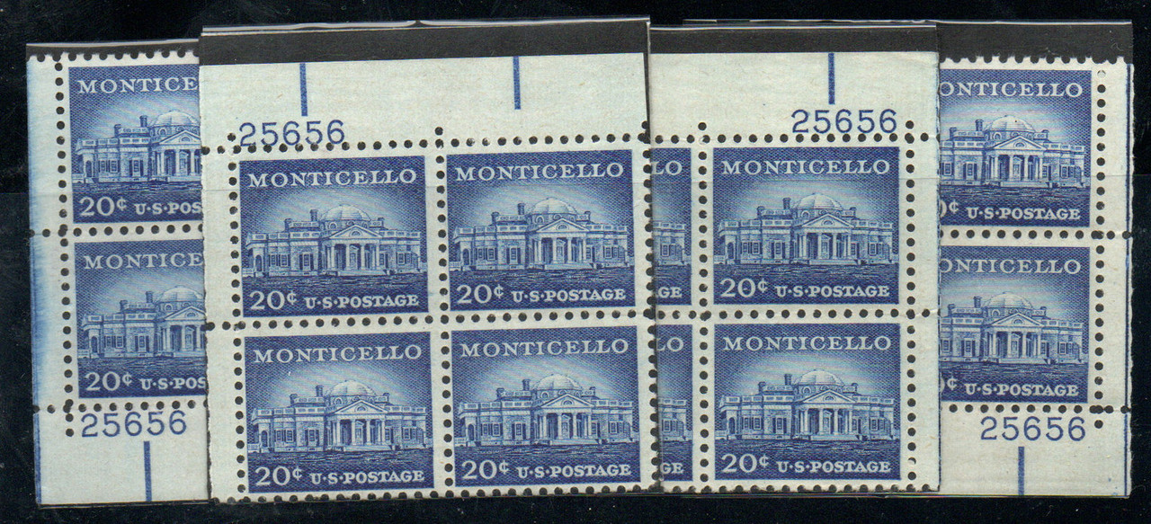 - 1047 plate 25656, MATCHED SET of 4 Plates, VF OG NH, we have an entire stock of this Scott Number in matched set, ASK!