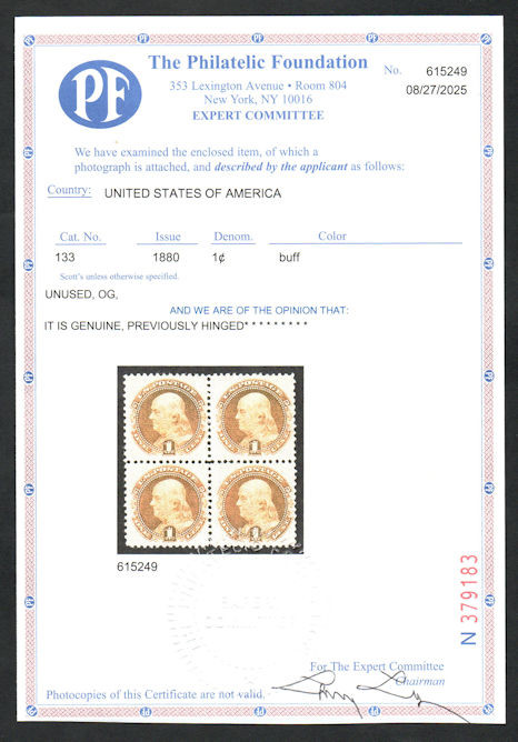 # 133 F/VF OG VLH, w/PF (08/25) CERT,