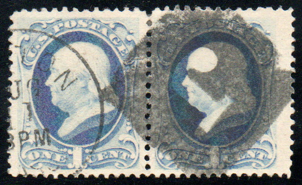 # 145 VF/XF, Pair, "J in square" & town cancel, large margins, CHOICE!