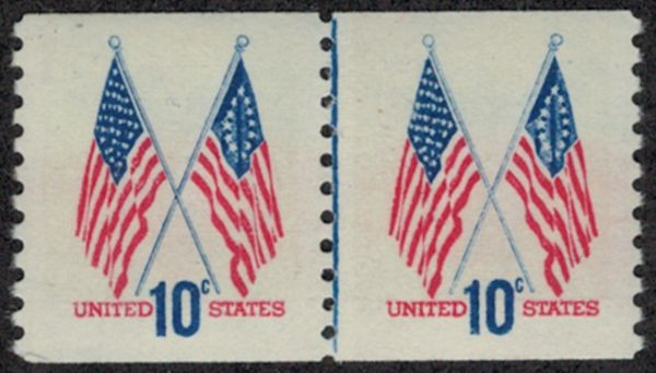 #1519 VF/XF OG NH, Line Pair Blue, 100% complete huck press line, RARE!