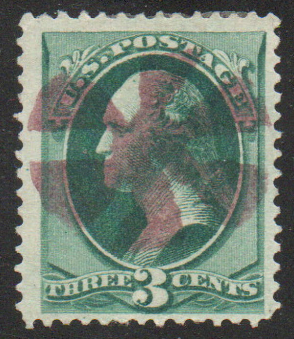 # 158 VF JUMBO, sock on the nose purple "circle of triangles" cancel, fresh!