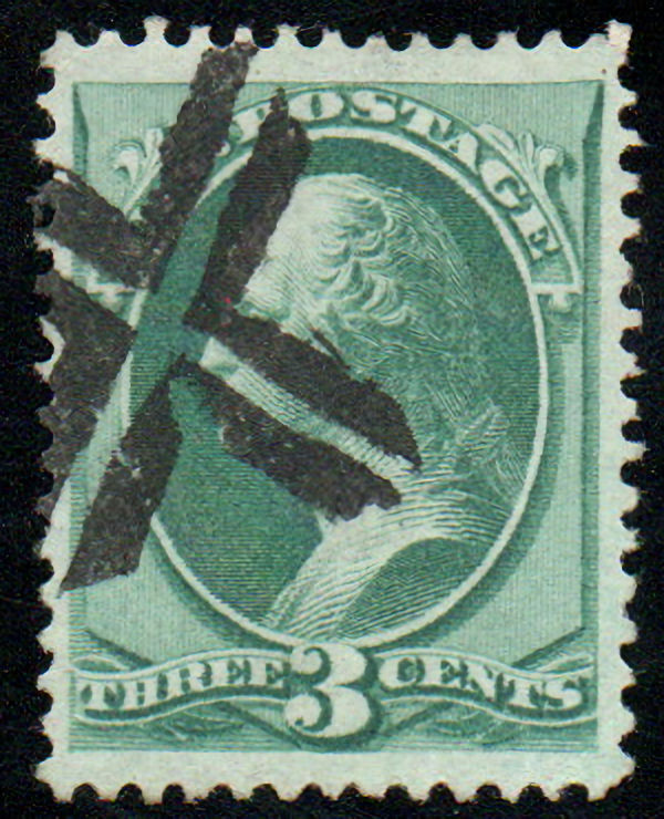 # 158 XF, bold fancy "crossroads" cancel, nice strike, lovely margins, SELECT!