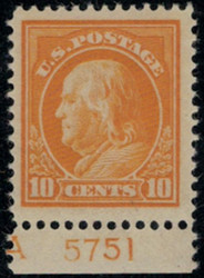 # 398 XF-SUPERB OG VLH, plate number, Bright Color!