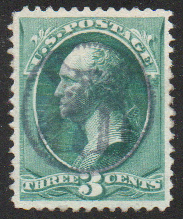 # 207 XF-SUPERB, sock on the nose fancy purple "shield in circle" cancel, nice margins, GEM!