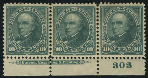 # 273 XF OG H, Plate Strip of 3, vibrant color, well centered!