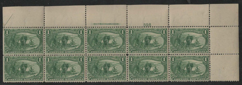 # 285 VF to F/VF OG NH, glazed gum, some perf reinforcement, Plate Strip of 10, Fresh!