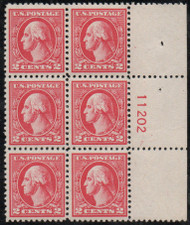 # 526 F-VF OG 3 NH, 3 H, Plate Block of 6, large top, rich color!