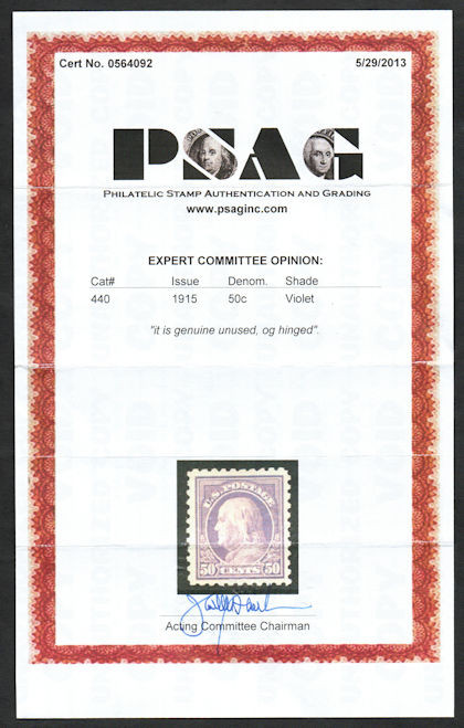Click the button below to add the # 440 VF/XF OG H, w/PSAG (05/13) CERT to your wish list.