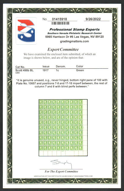- # 498b VF OG NH, Imperf Horz Pair, w/PSE (09/22) CERT, well centered and undervalued in Scott's, beware of pairs offered without certificates, many fake and blind perforation pairs exist, SELECT!