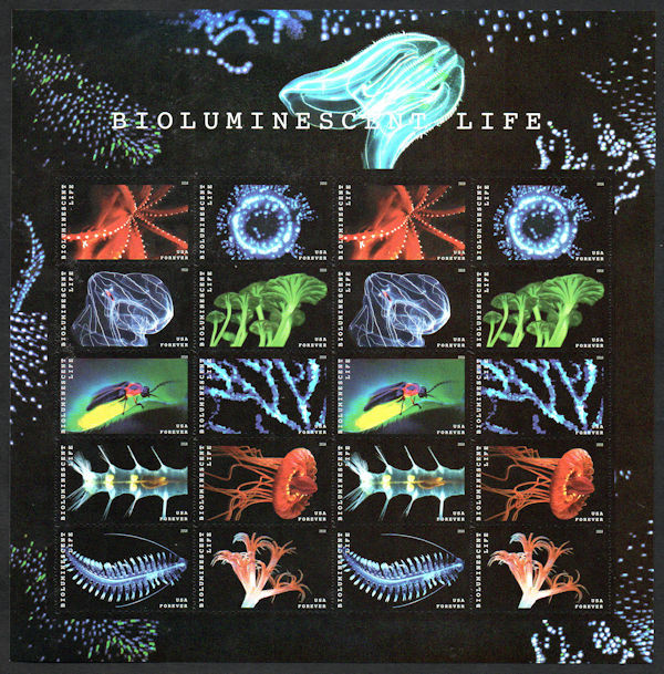 - #5264 - 73 VF/XF OG NH, Forever Bioluminescent Life Full Sheet, eye popping color, SUPER!