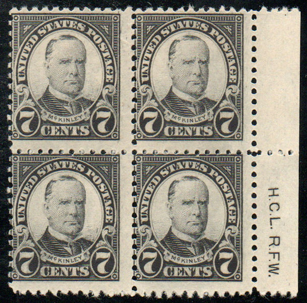 # 559 Fine+ OG NH, block of 4, printers markings, post office fresh!