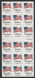 #4641 - 44c Forever Justice, Equality, Freedom and Liberty Complete Booklet Pane of 20, VF OG NH
