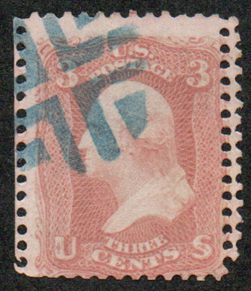 Click the button below to add the # 65 Fine, double row of perfs, clear fancy blue cross roads cancel, lovely color! to your wish list.
