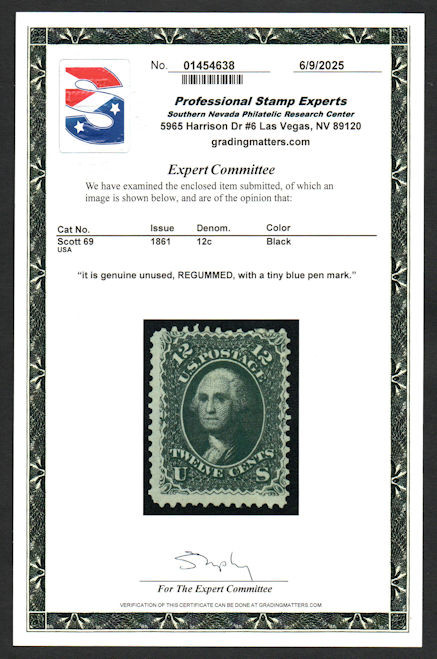 # 69 F-VF mint NG, w/PSE (06/25) CERT, regummed, valued as no gum, bold color!