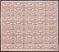 #C 16 VF OG NH, 5c Winged Globe Purple Sheet of 50, dull gum, rich color!