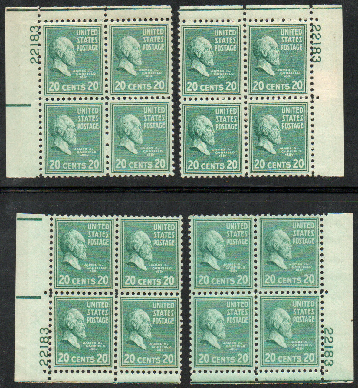 Click the button below to add the # 825 F/VF to VF OG NH, 22183, Matched Set of 4 plate blocks, fresh to your wish list.