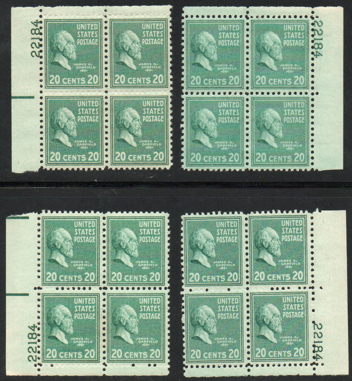 Click the button below to add the # 825 F/VF to VF OG NH, 22184, Matched Set of 4 plate blocks, nice to your wish list.