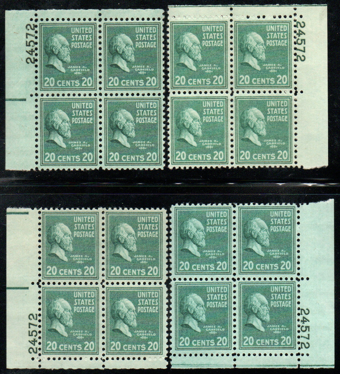 Click the button below to add the # 825 F/VF to VF OG NH, 24572, Matched Set of 4 plate blocks, nice to your wish list.