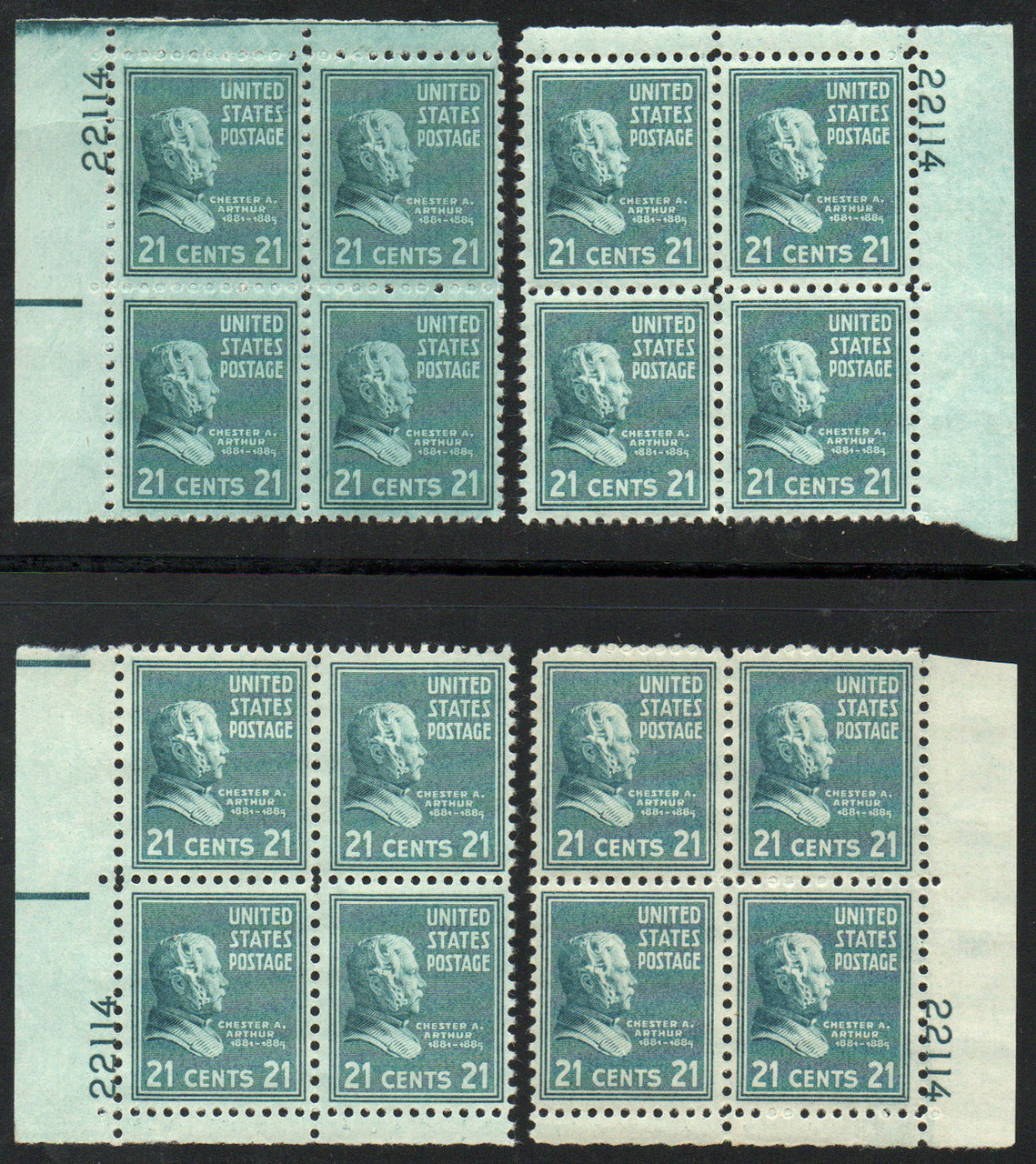 # 826 F/VF to VF OG NH, 22114, Matched Set of 4 plate blocks, nice