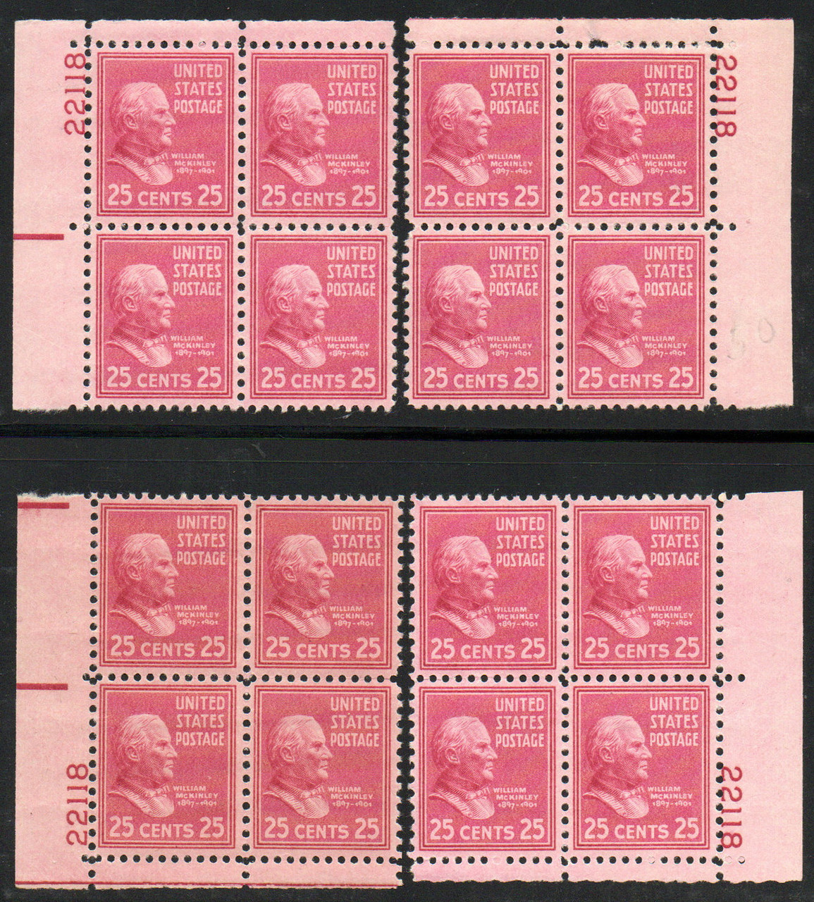 # 829 F/VF to VF OG NH, 22118, Matched Set of 4 plate blocks, nice