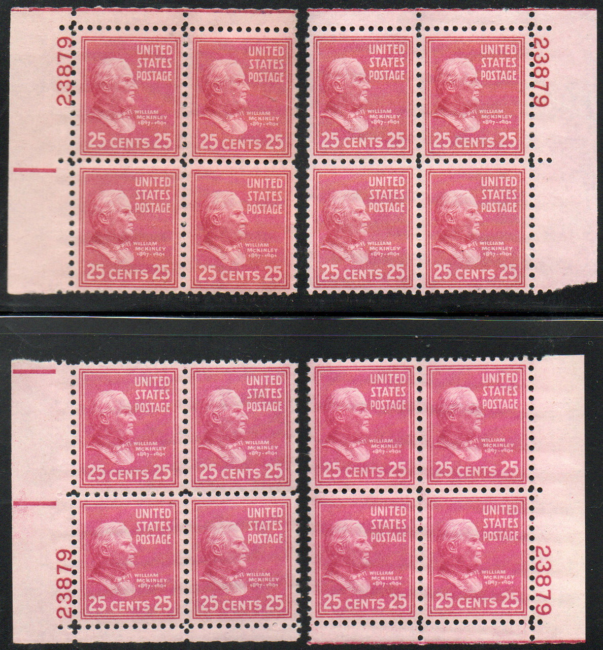 # 829 F/VF to VF OG NH, 23879, Matched Set of 4 plate blocks, fresh