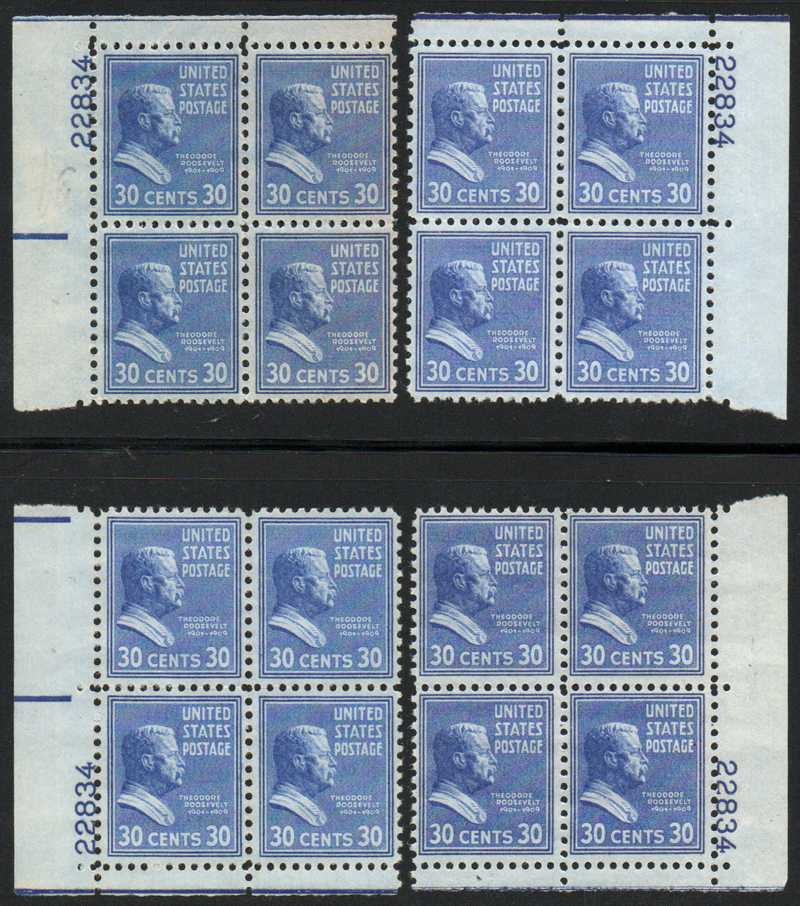 Click the button below to add the # 830 F/VF to VF OG NH, 22834, Matched Set of 4 plate blocks, fresh to your wish list.