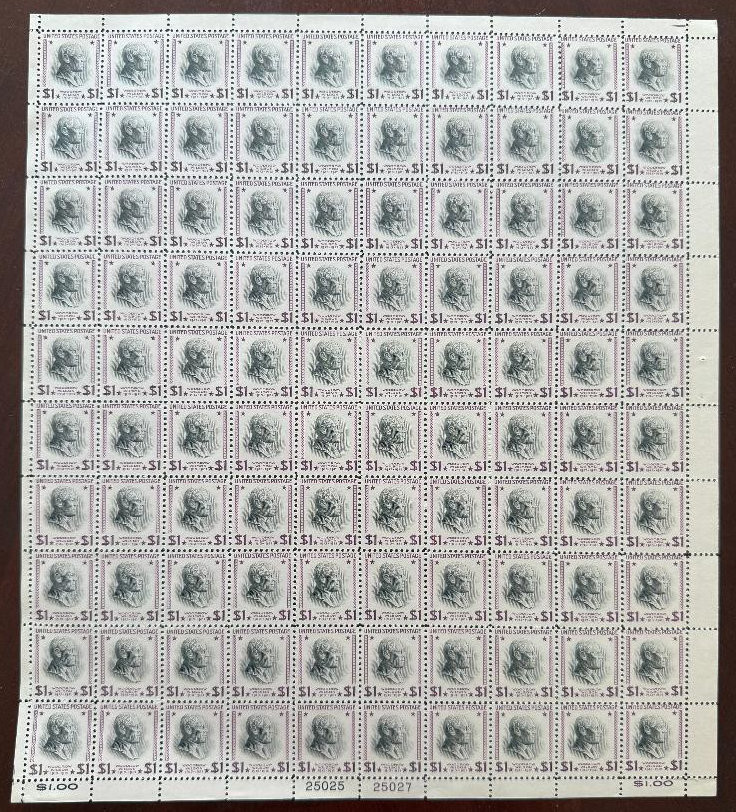 # 832c VF OG NH, $ 1.00 Wilson, fresh sheet of 100, SUPER TOUGH TO FIND!