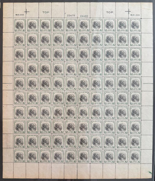 # 833 VF OG NH, $2 Harding, Sheet of 100, a very fresh stamp, no problems, Getting Hard to Find!