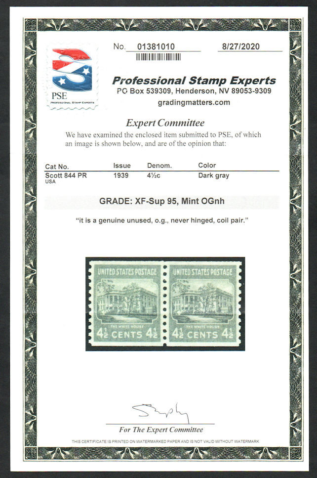 # 844 XF-SUPERB OG NH, Pair, w/PSE (GRADED 95 (08/20)) CERT, a super nice pair, Lovely Color!