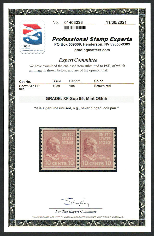 - # 847 XF-SUPERB OG NH, Pair, w/PSE (GRADED 95 (11/21)) CERT, a super nice pair, Lovely Color!