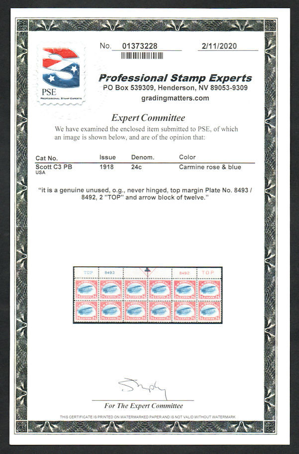 - #C 3 VF/XF OG NH, PB/12, w/PSE (02/20) CERT, fresh color and slightly faster plane on each stamp, SUPER NICE!