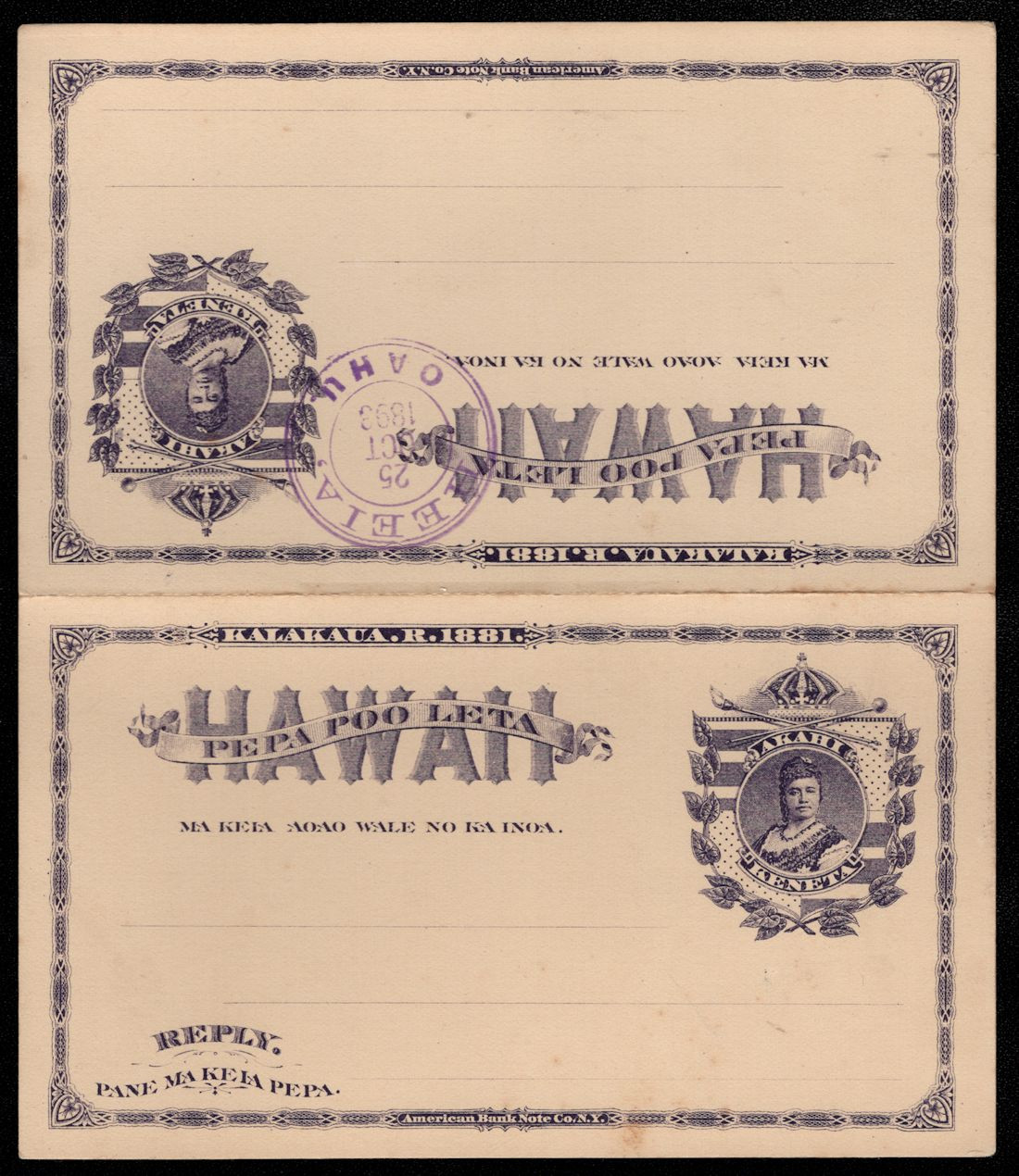 - Hawaii #UY1 VF/XF entire, paid postal reply cards, folded, one side canceled, Nice and Fresh!