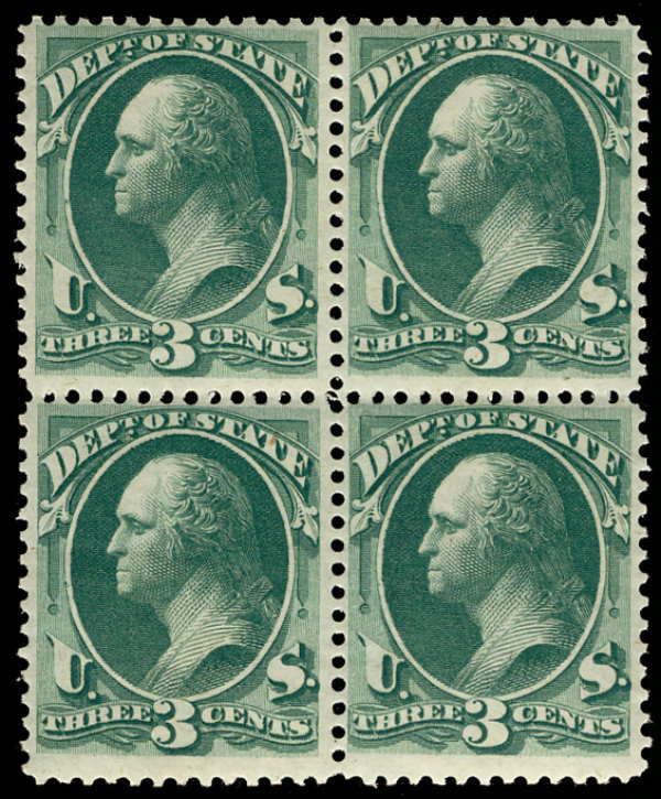 - #O 59 Fine+ G NH/Hr, Block, 3 stamps NH, bold color, Super Nice, RARE BLOCK!